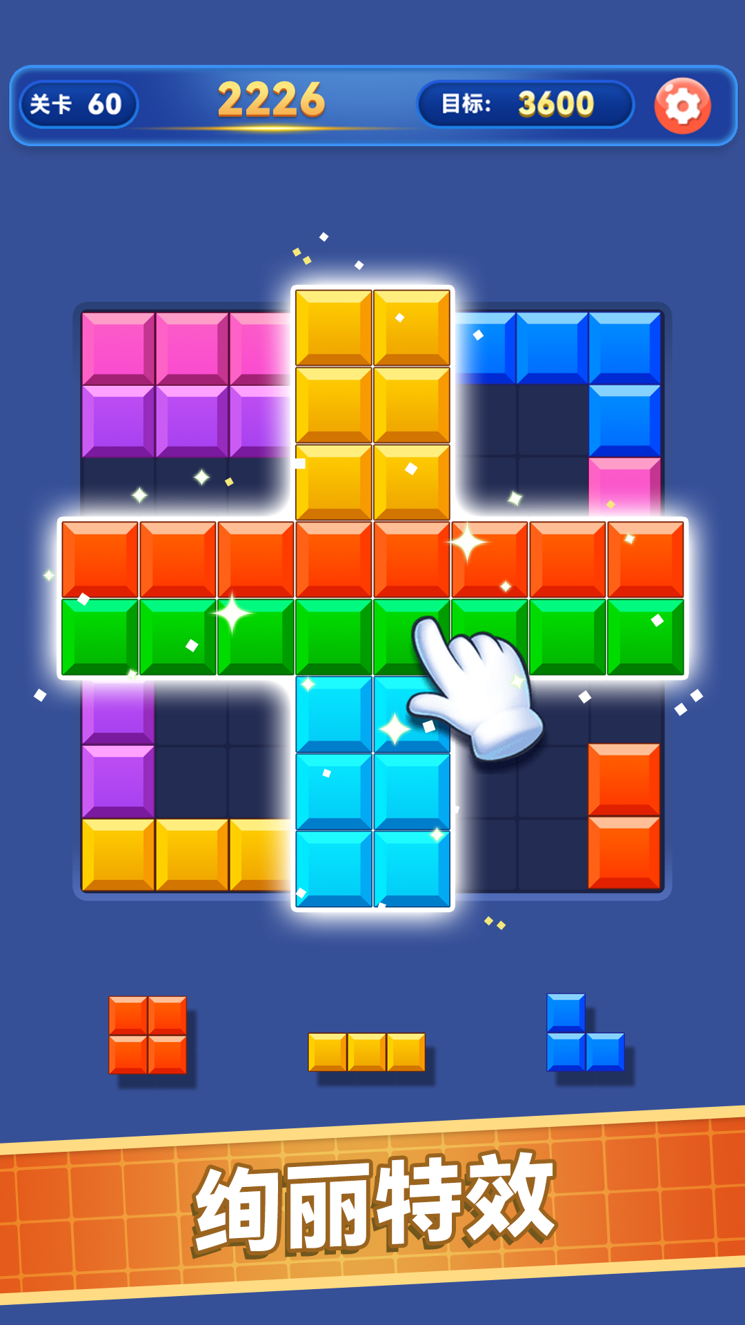 1、独特的拼图机制,结合了传统俄罗斯方块的经典玩法和创新设计,带来全新的消除体验。
