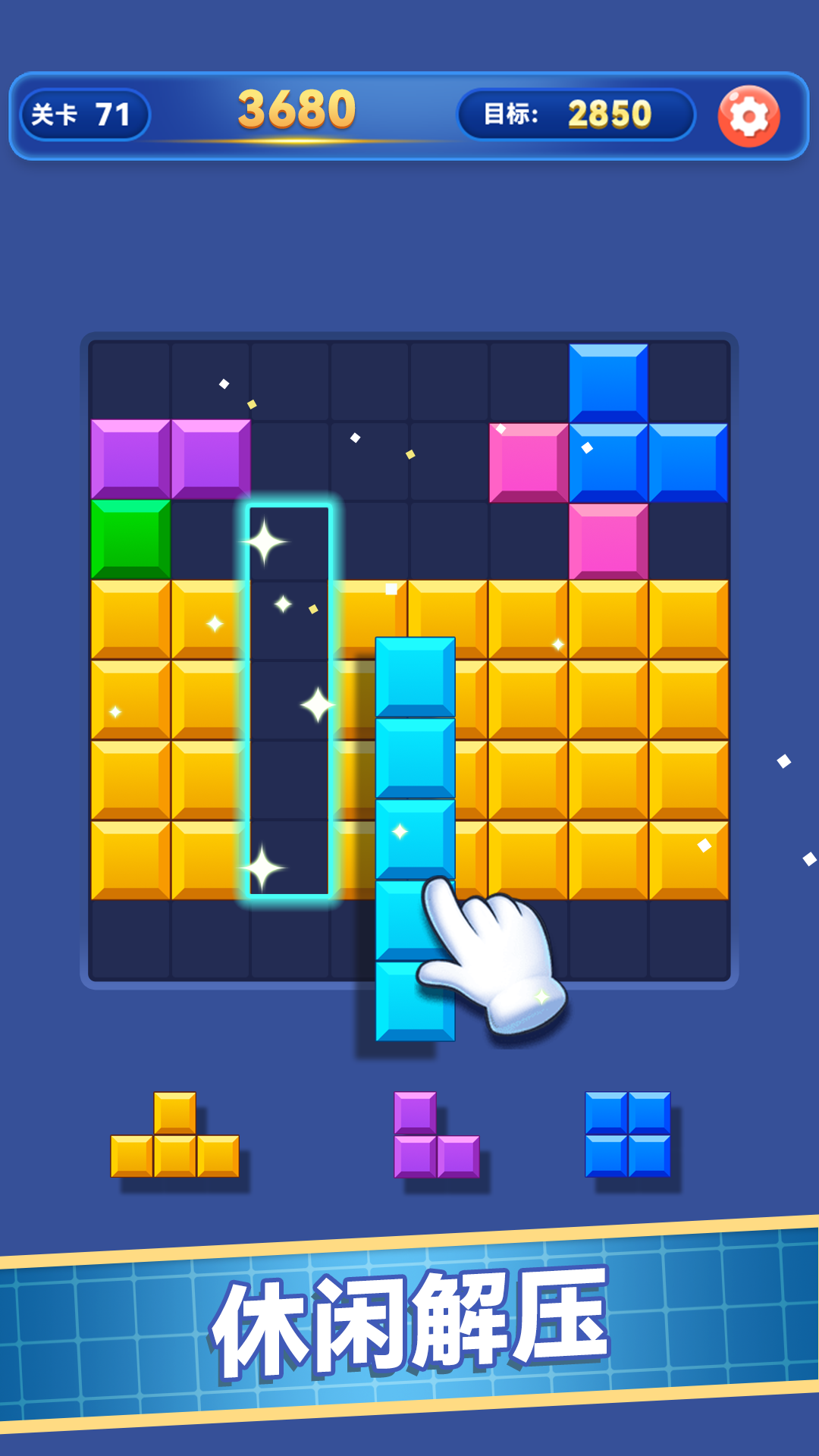解压消方块是一款充满乐趣与挑战的益智游戏,玩家将在多彩的方块世界中展开一场智慧的较量。游戏的核心玩法围绕着方块的消除,玩家需要通过观察与思考,寻找最佳的拼接方式来消除相同颜色的方块。每一关都设计得别具一格,既有简单的入门关卡,也有考验策略和反应能力的高难度挑战。目标不仅是消除方块,更是锻炼玩家的空间思维能力和逻辑推理能力,适合各个年龄段的玩家,轻松愉快的氛围让人欲罢不能。