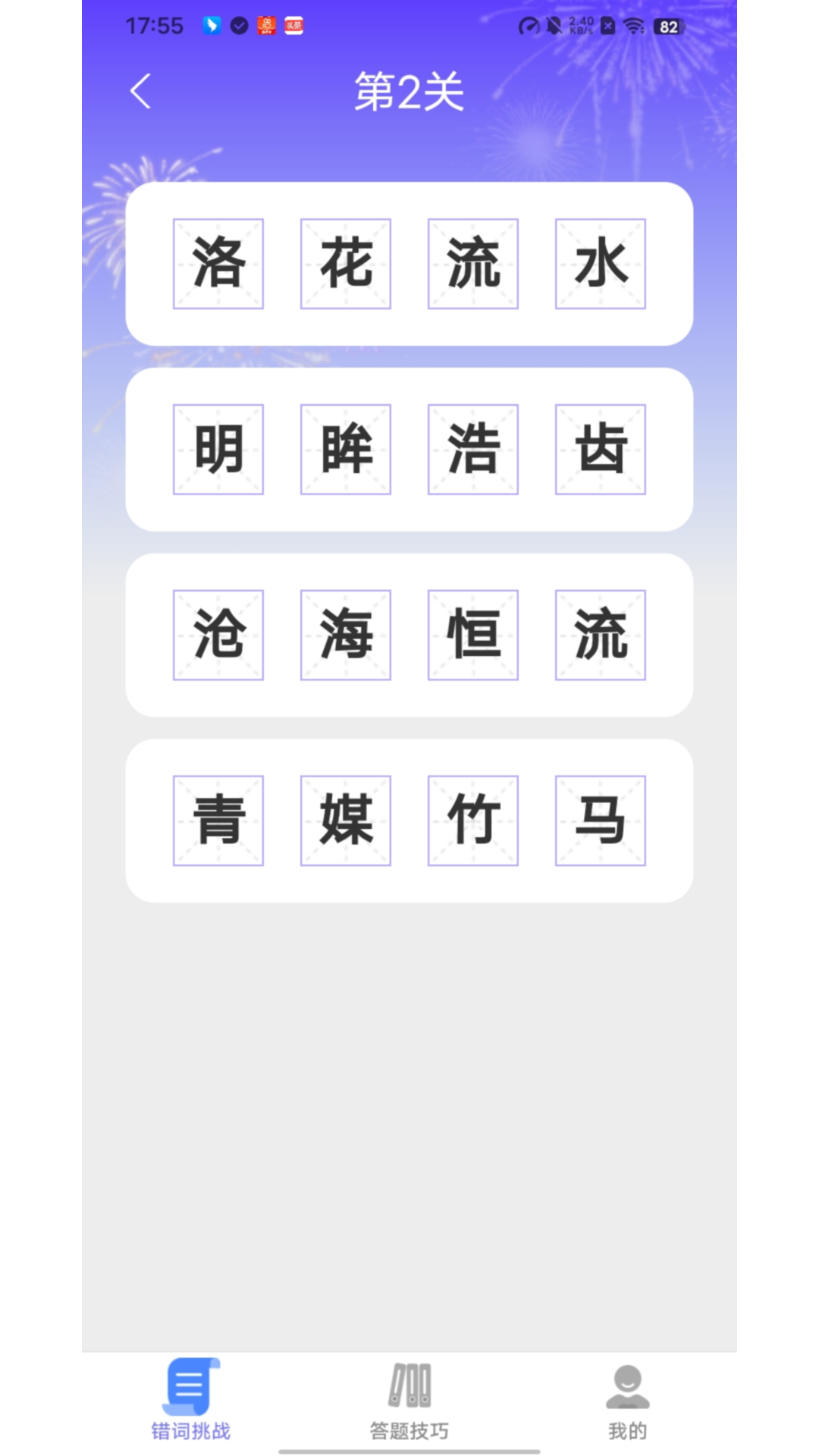 3、在闯关模式中,玩家需要逐步完成各个关卡的挑战,随着关卡的推进,题目的难度也会逐渐增加,考验玩家的综合能力。