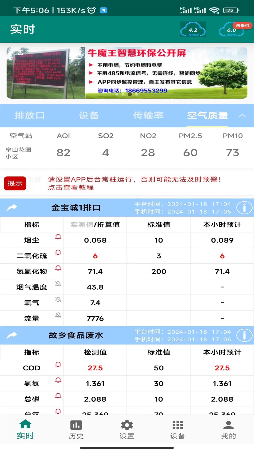 1. 实时监测预警,随时查看当前的污染物排放数据,若发现超标情况,系统会自动发出警报。