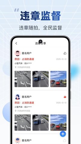 拍交通违规违章是一款行车记录辅助工具,通过图像识别技术帮助记录行车过程中的交通场景,软件能够识别多种交通行为,为判断具体情形提供参考,拍照功能可以自动添加时间与地点水印,确保记录的规范性,提供了与行车相关的多种查询服务,方便车主获取即时信息。