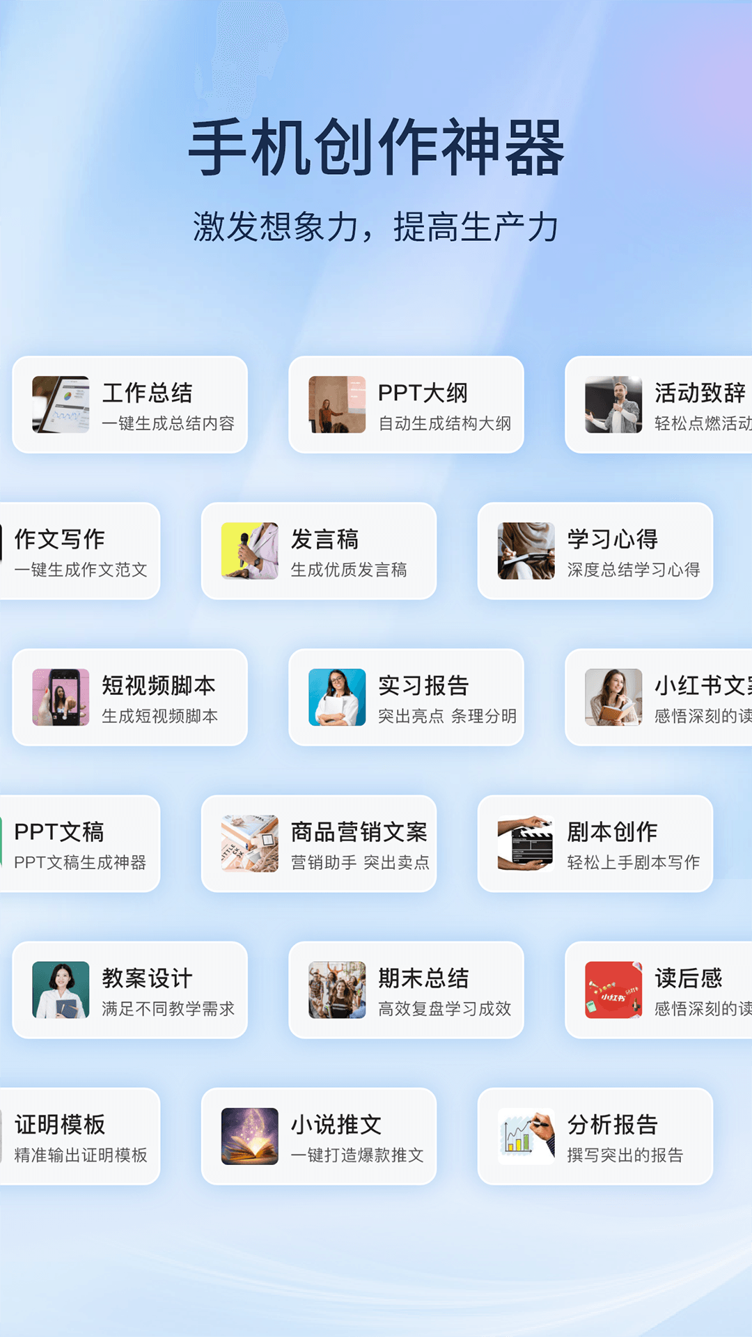 非凡文档是一款手机端的文档智能写作与资源整合平台,满足用户在日常生活、学习和工作中对各类文案的需求。能帮助用户高效生成标准格式和个性化内容的文档,还能为各行各业提供丰富的专业资料和模板,从而解决用户在写作和资料准备方面的困扰。无论是学生、职场人士还是自媒体创作者,非凡文档都能成为他们的得力助手,帮助他们节省时间,提高工作效率。