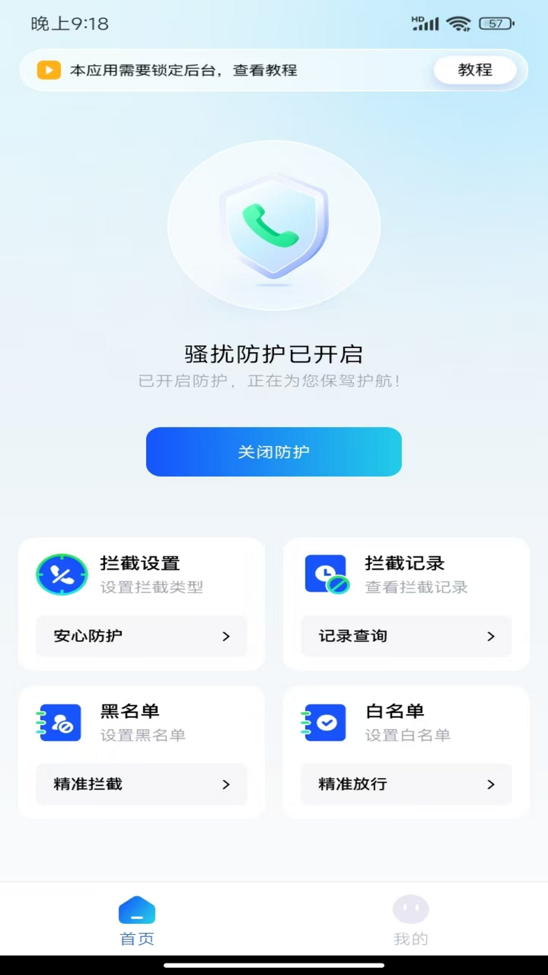 1. 下载并安装骚扰电话拦截应用,完成安装后打开软件。