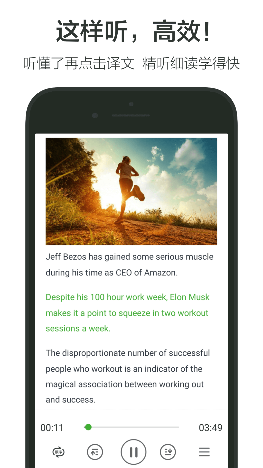 3. 具备循环播放功能,选择特定句子进行反复听,强化记忆和理解。