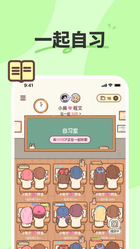 4. 线上自习室功能,帮助情侣们在学习中互相激励,共同进步。