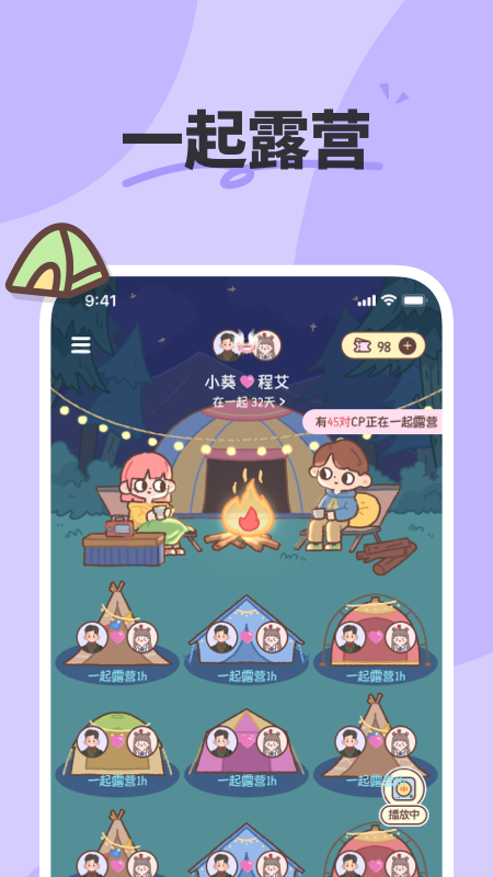 3. 虚拟露营场景,为情侣们创造一个浪漫的夜晚氛围,让每日的晚安变得更加特别。