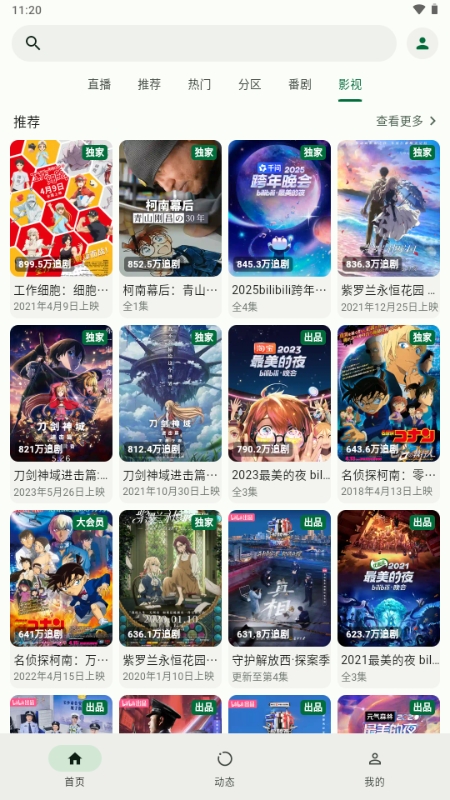 3、界面布局清晰直观,核心功能区如推荐、热门、分区、动态等一目了然,查找内容非常省心。