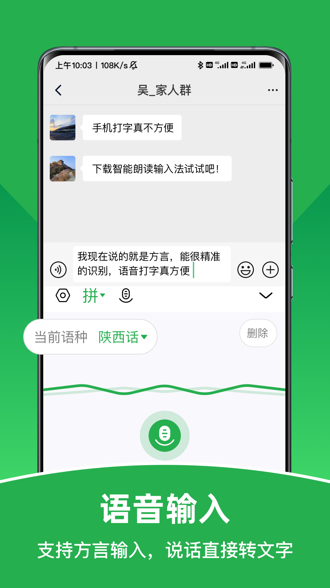 3、进行语音输入时,长按麦克风图标说话,说完松开,所说内容会转为文字并自动朗读一遍。