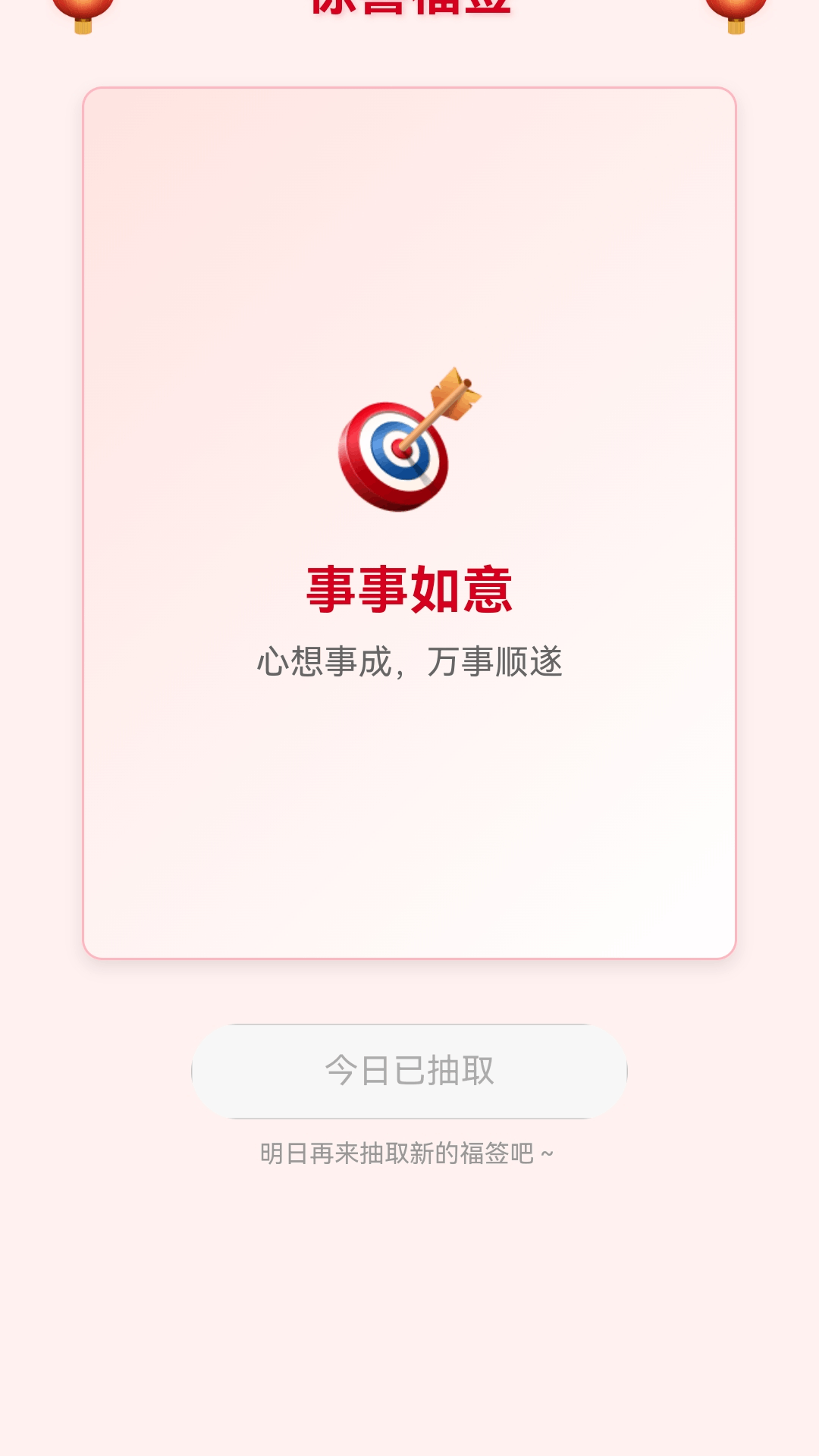 4. 抽签福签功能,随机抽取福签,获取生活中的小提示和建议。