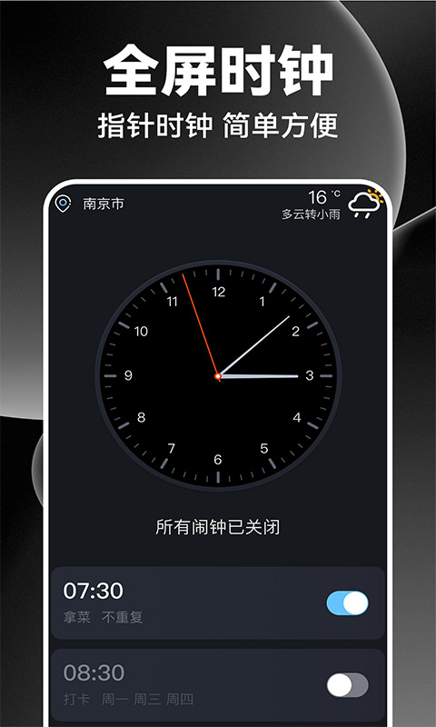 1. 提供多种闹钟模式,满足不同用户的需求,帮助用户在繁忙的生活中保持高效的时间管理。