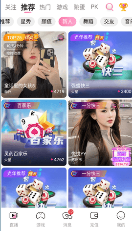 2、在主界面上,你会看到各类直播间的推荐,浏览不同的主播,选择你感兴趣的直播进行观看。