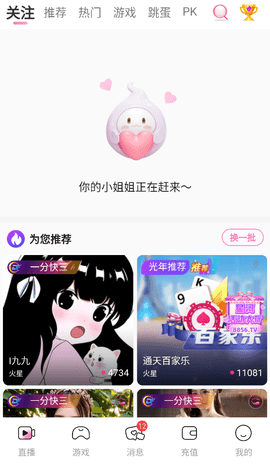 4、如果你对某位主播感兴趣,可以选择关注她,之后她的直播动态将会第一时间通知你,方便你不再错过她的精彩表演。