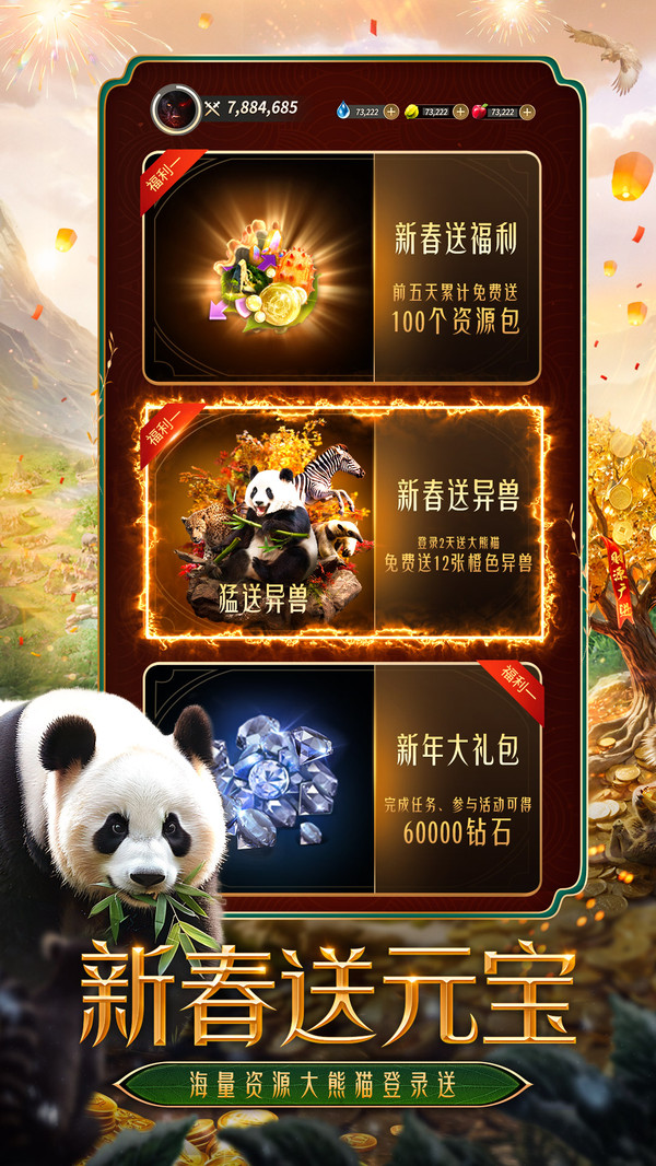 野兽领主新世界是一款充满挑战与冒险的策略游戏。玩家将化身为狮子,作为万兽之王的你,肩负着重建家园的重任。随着一场灾害的降临,原本的栖息地变得不再安全,许多动物失去了生命。为了生存和繁衍,你带领着剩余的野兽群落踏上了寻找新领地的旅程。在这片看似宁静却暗藏危机的新世界中,玩家需要通过智慧与勇气,建设安全的栖息地,召唤强大的异兽,抵御外敌,争夺资源,最终实现领地的扩张与繁荣。
