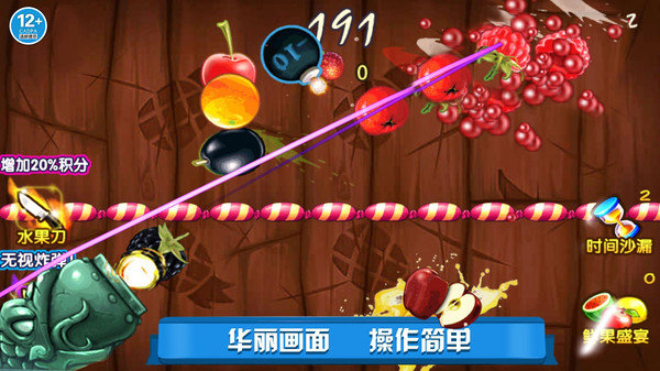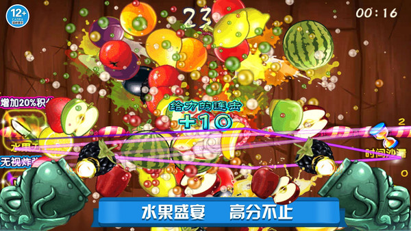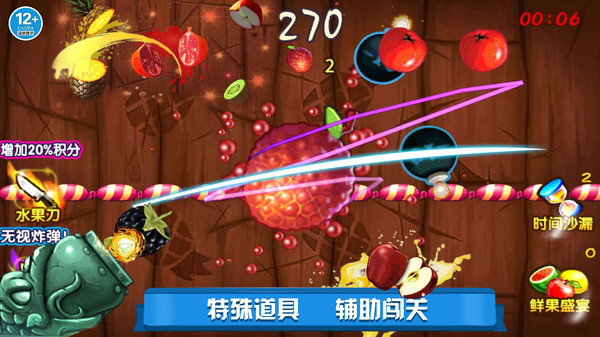 1、在经典模式中,挑战自己的切水果技巧,尽量在限定时间内切割更多的水果,看看自己能坚持多久。