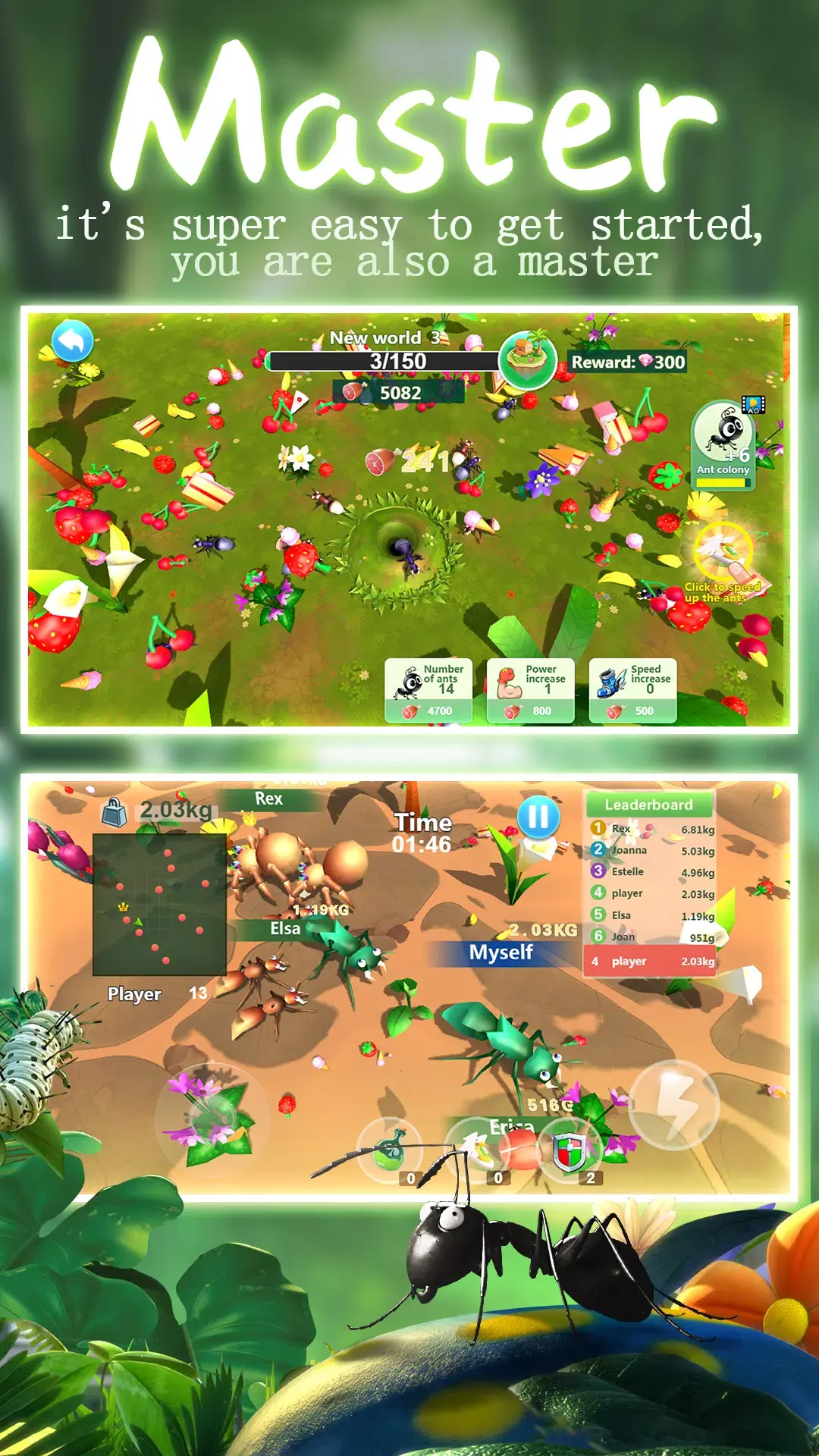 4、蚂蚁大作战还提供了丰富的角色与技能系统,通过不断的成长与升级,解锁更多的技能,提升战斗实力。
