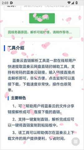 1、精灵蓝奏云解析具备强大的链接解析能力,能够处理复杂的分享链接,确保用户在下载过程中不会受到限制,提供了更为灵活的使用体验。