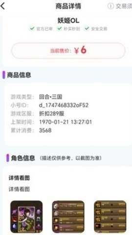 2、选择所需的虚拟资产,点击进入详细页面,查看商品信息和价格。