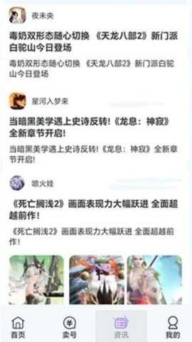 1、打开淘游坊应用,进入首页,浏览各类虚拟资产的交易信息。