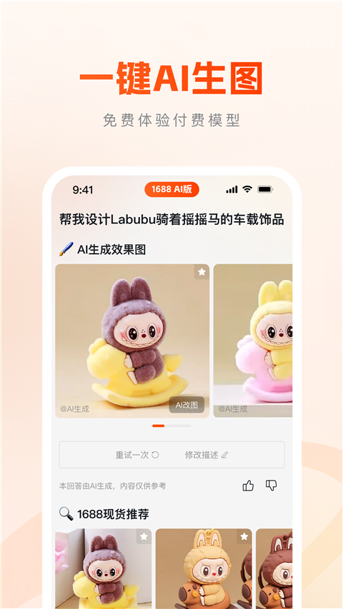 1688AI版是一款由阿里巴巴推出的创新型AI选品工具,帮助分销商、服务商及创业者等用户更高效地对接源头供应商和商品资源。软件整合了1688平台的数据,能够根据用户的兴趣和偏好,提供个性化的选品资讯,帮助用户轻松掌握市场动态,提升生意增长的可能性。利用智能图片搜索功能快速找到心仪的商品,配置专属的AI助手进行精准推荐,从而实现高效的选品策略。对于需要快速响应客户需求的定制服务商,或希望挖掘全网趋势的创业者,1688AI版都能提供强有力的支持。