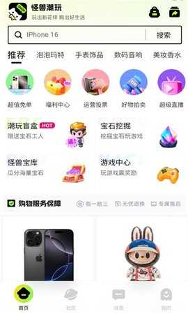 怪兽潮玩是一款创新的线上平台,为用户提供丰富多样的购物体验。平台内涵盖了泡泡玛特、手表饰品、数码音响、美妆香水等多种商品类型,结合了潮玩盲盒、挖矿养成等元素,形成了独特的购物生态。购物的乐趣与游戏的互动性和社交性完美结合,真正实现了玩出新花样,购出好生活。适合所有热爱潮流与新奇体验的消费者,怪兽潮玩满足用户对潮流产品的需求,带来独特的消费体验。
