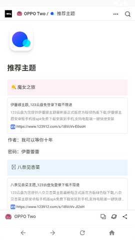 1、打开OPPOTwo软件,进入主界面,看到主题推荐和搜索框。