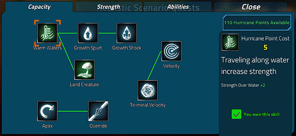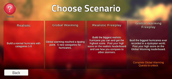 1、进入游戏后,通过主菜单选择创建台风,进入设置界面,自由调整台风的强度与路径。