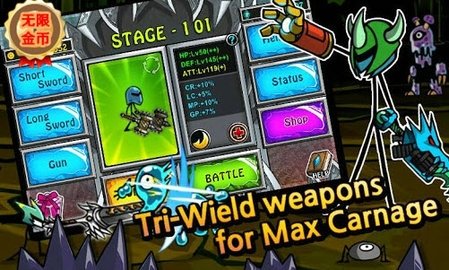 1、游戏提供了多样化的角色和装备选择,根据自己的喜好进行搭配,塑造独特的火柴人形象。