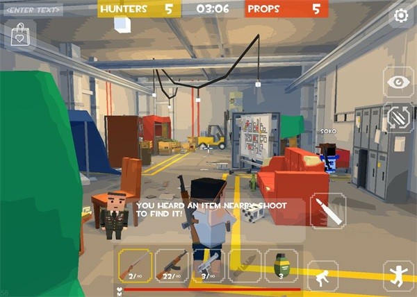1、作为猎人,仔细观察地图中的细节,寻找可疑的道具,利用武器进行攻击,及时捕捉隐藏的道具玩家。