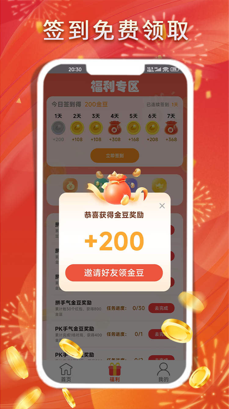 1、每个新用户在首次登录时都会收到丰厚的金豆奖励,贴心的福利让每个人都能轻松上手,享受抢红包的乐趣。