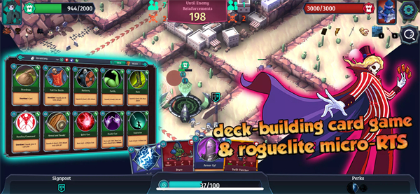 1、结合了牌组构建与Roguelite微型RTS玩法,带来了独特的游戏体验,玩家可以享受多样化的战术选择。