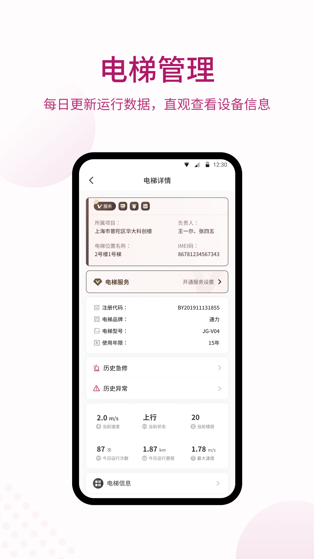 4、随时随地查看电梯的使用情况,实时获取相关数据,让电梯的使用变得更加透明,增强了用户的信任感。