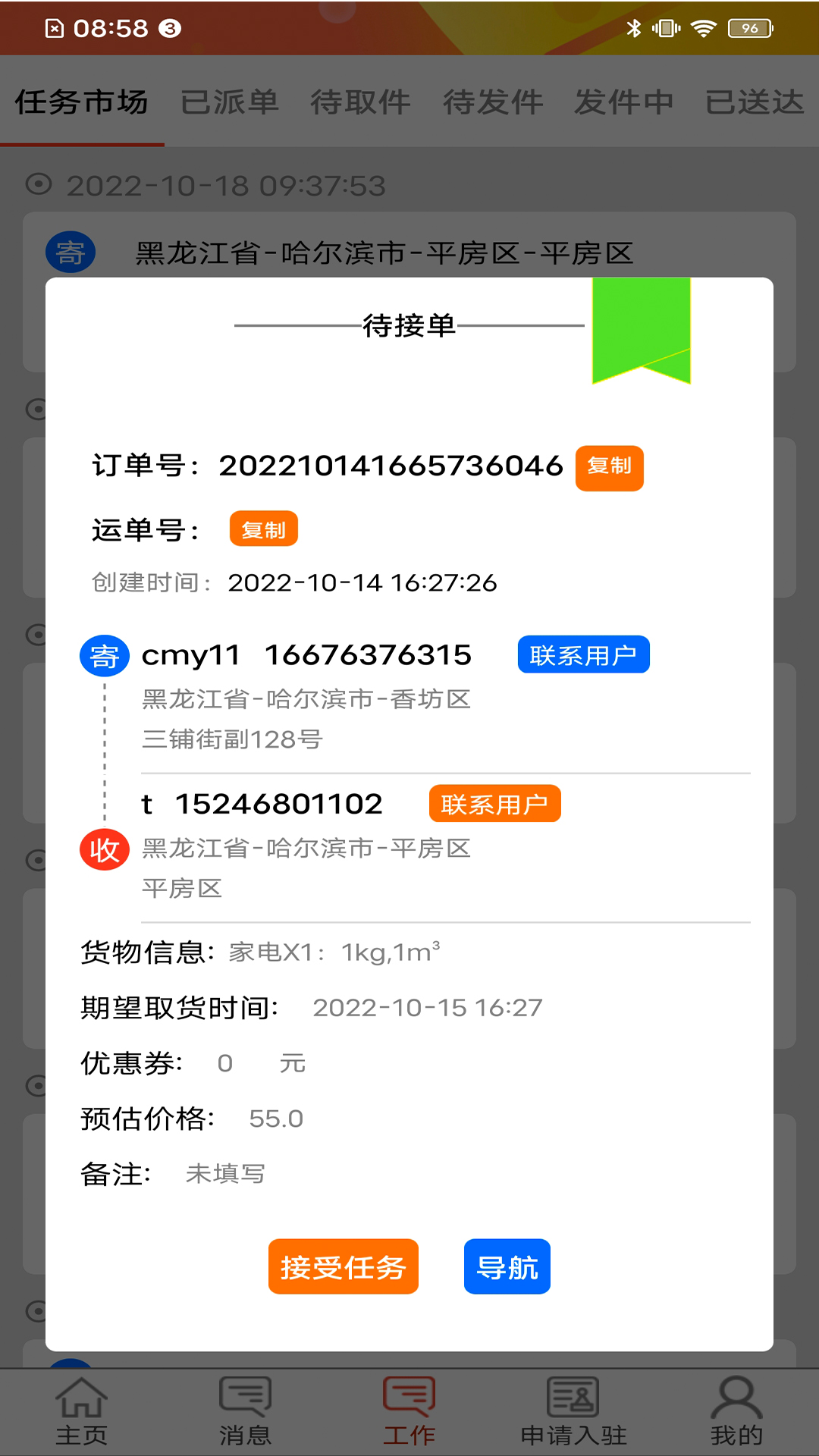 3、登录成功后,用户将看到首页界面,点击寄件选项,进入寄件流程,填写寄件人和收件人的详细信息。