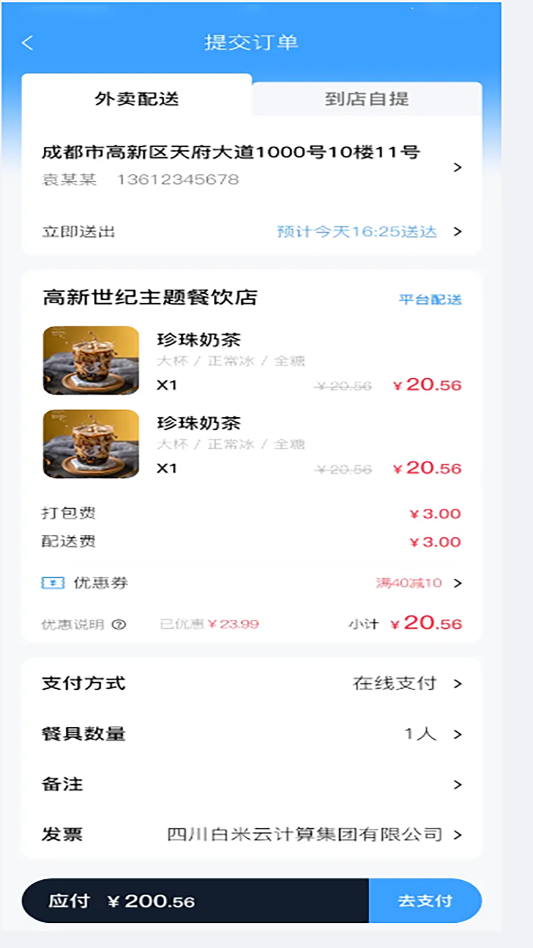 5、选择合适的支付方式,完成支付后,查看订单状态,静待配送员将商品送到家中。