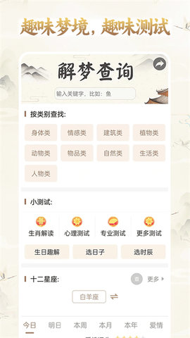 3、每日星座运势和专属心理测试的结合,让用户在解梦的也能获取更丰富的运势信息。
