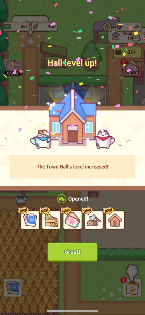 5、参与各种活动时,与猫咪一起完成任务,获得奖励并提升小镇的知名度,吸引更多猫咪前来居住。