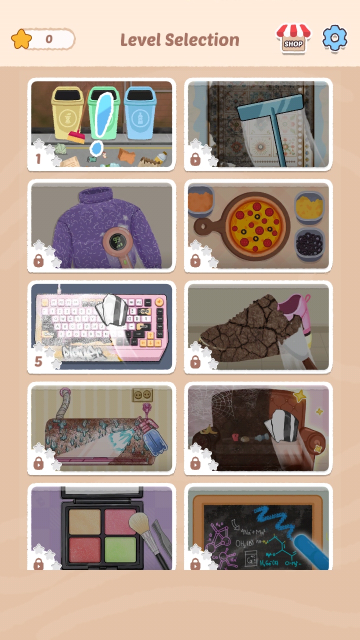 2、游戏场景设计精美,涵盖了家庭、办公室等多种环境,玩家在每个场景中都能找到不同的清洁挑战,增添了游戏的趣味性。