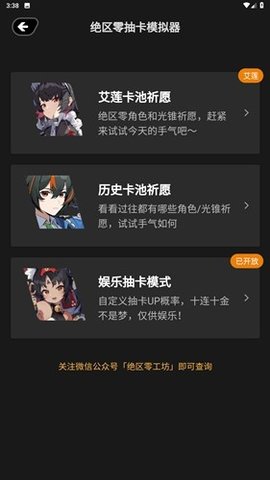 3、在首页浏览功能选项,找到你感兴趣的内容,抽卡分析或角色图鉴。