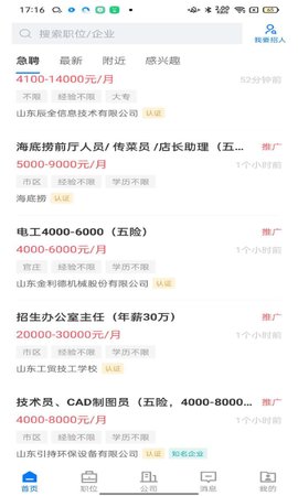 3、如果你想找工作,可以点击招聘栏目,输入相关的职位关键词,系统会为你展示匹配的岗位。