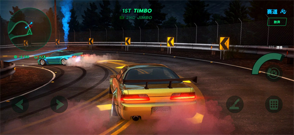 4、在接近转弯时,点击手刹按钮进行漂移,成功漂移后要及时松开手刹并加速,以保持漂移状态,增强过弯速度。