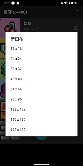 2、从9种预设尺寸(如16x16、64x64等)中选择适合的分辨率,确认后进入编辑界面。