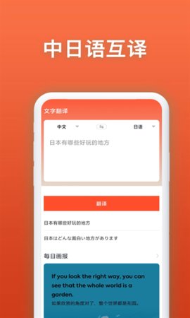 2、语音翻译功能支持中日双语,说中文出日文,说日文出中文,识别后会自动播放翻译后的语音。