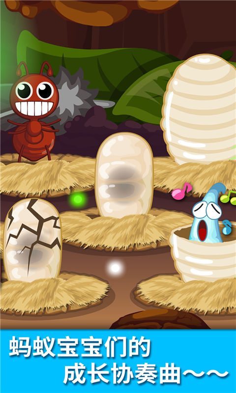 1、游戏中呈现了华丽的蚁后室,孩子们可以观察到蚁后每天生下101个小宝宝的奇妙过程,感受生命的延续。