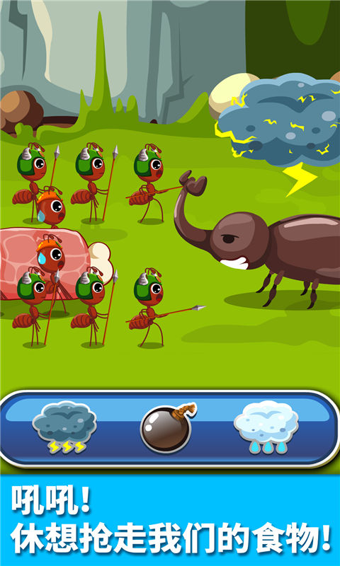 4、游戏中还有勤劳的工蚁在地面上觅食,孩子们可以帮助它们应对抢夺食物的敌人,培养他们的团队协作意识。