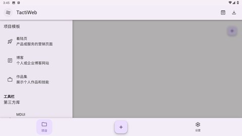 1、打开TactiWeb应用,在主界面中找到中间的加号图标,点击进入项目创建页面。