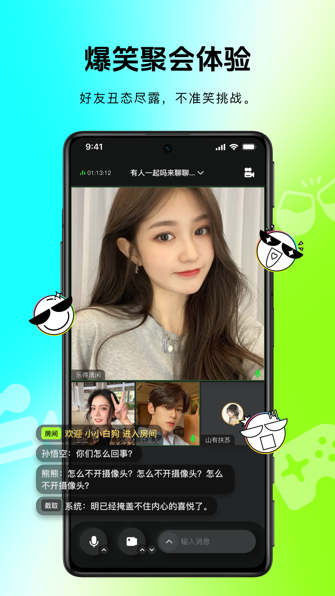 4、引入搞怪道具和表情分享,让聚会充满乐趣,打破了传统社交的沉闷,让每一次聚会都充满惊喜。