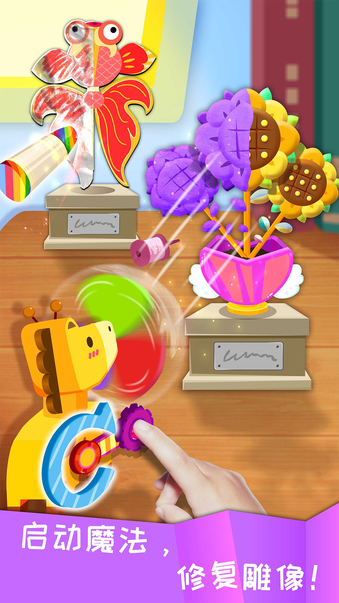 1、在这个充满奇妙的世界中,挥动魔法棒可以让花盆雕像闪闪发光,孩子们在探索中发现无尽的乐趣。