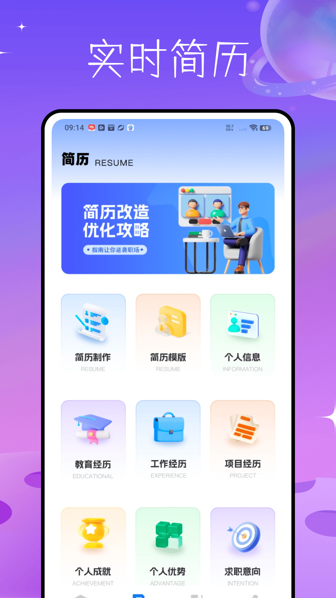 4、如需制作简历,选择求职简历模块,按照提示填写个人信息,系统会为用户生成格式美观的简历。