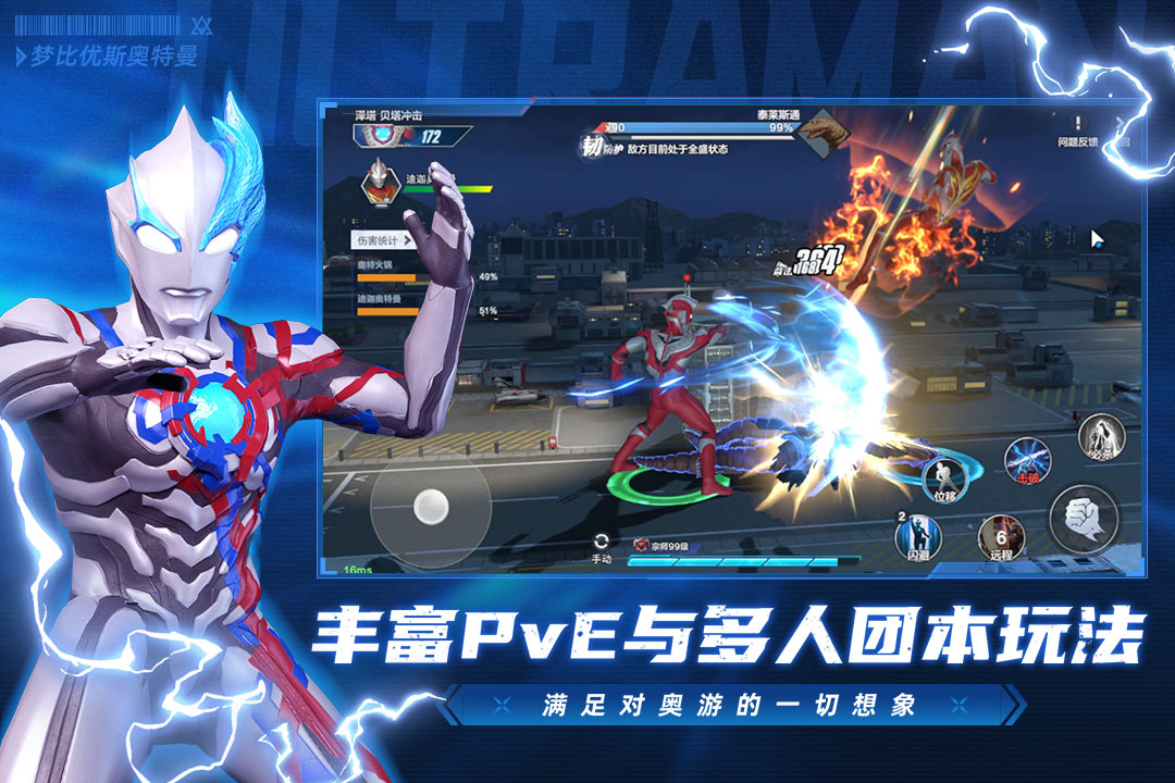 2、自由选择心仪的奥特曼英雄进行战斗,每位英雄都有独特的技能与特点,能够让玩家在战斗中体验到不同的战斗风格。