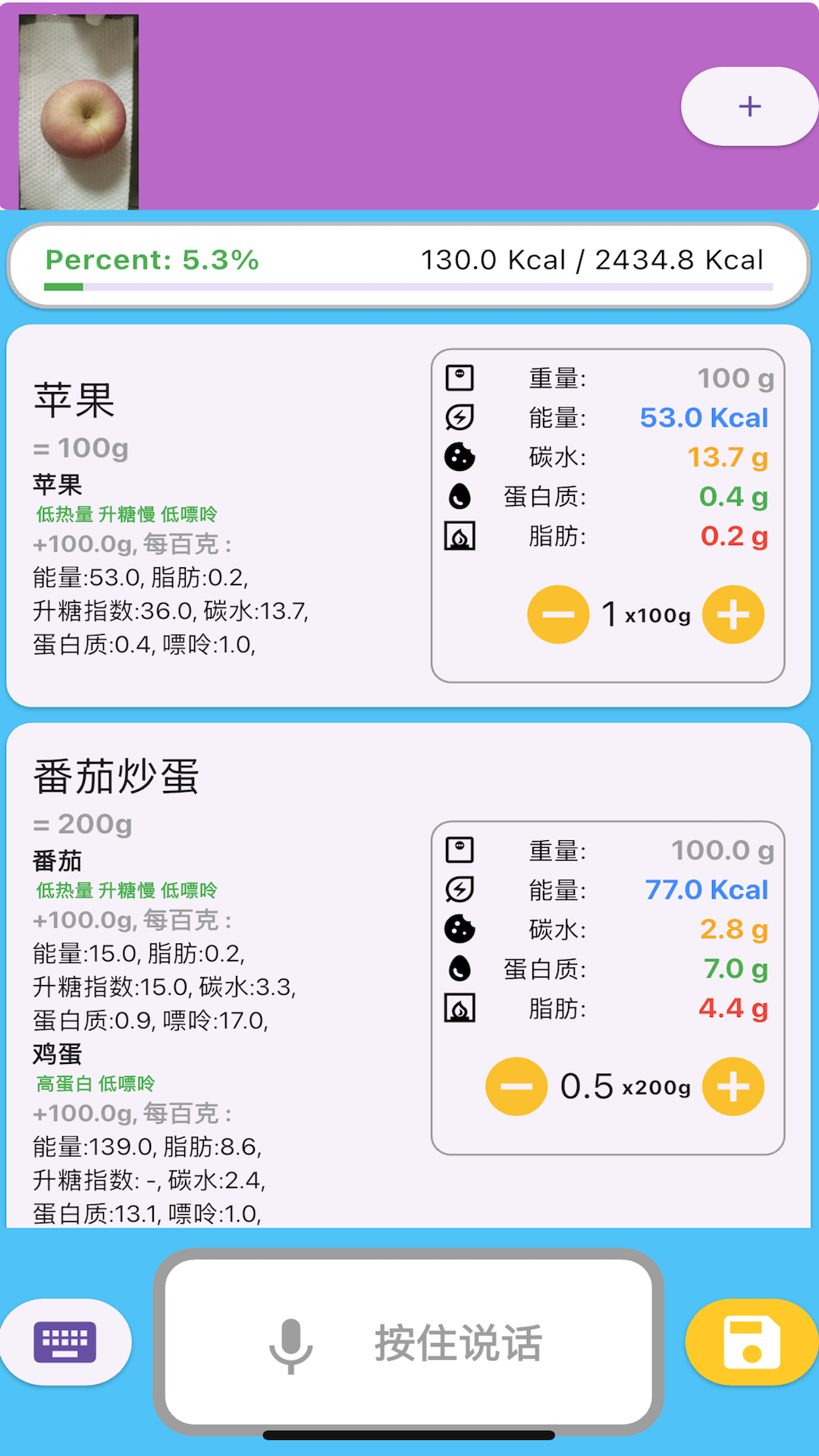 3、在记录饮食时,您可以选择语音输入,简单说出所吃的食物,应用将自动记录到您的饮食日志中。