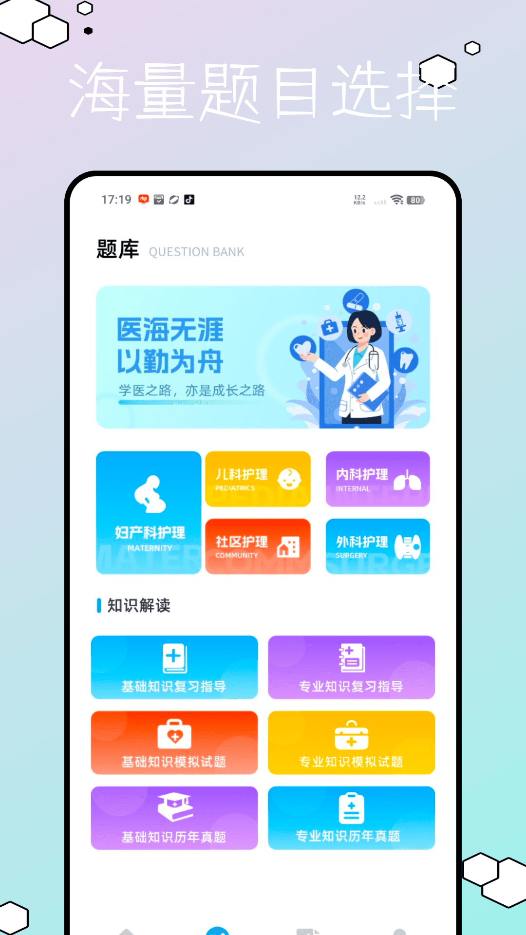 1、提供医护基础知识的学习模块,让用户在巩固基础知识的提升专业素养,增强职业技能。